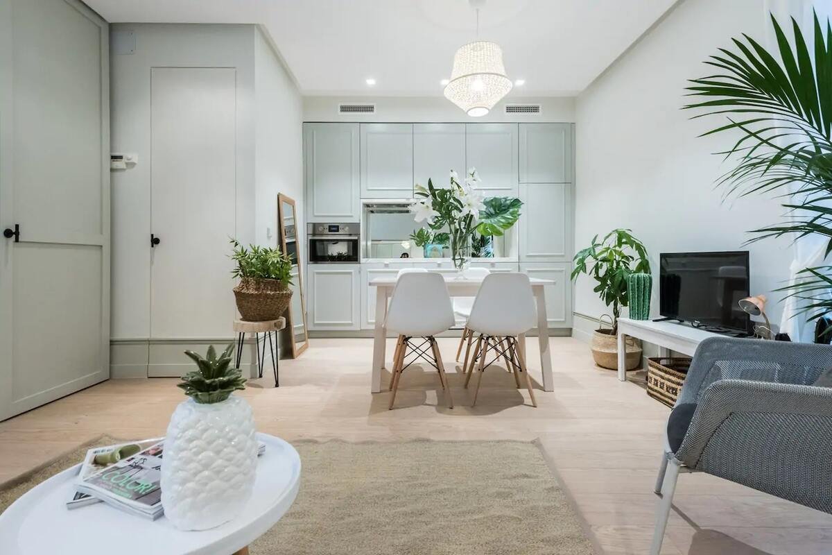 Cet appartement affiche une façade lumineuse et chaleureuse en plein cœur de Madrid. C’est le point de départ parfait pour explorer la riche culture et l’atmosphère vivante de la ville. Tout près, vous trouverez de nombreux cafés et restaurants accessibles à pied, vous permettant de savourer des plats locaux.
