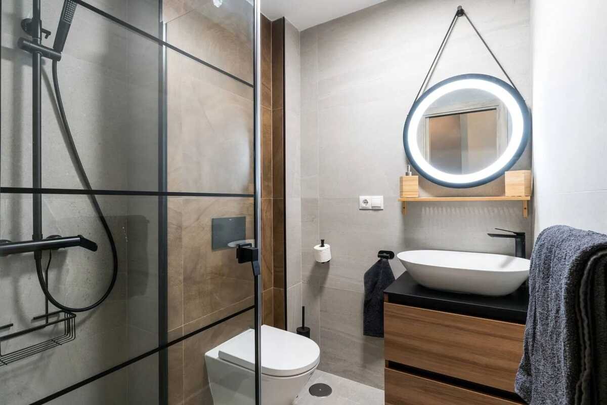 Les espaces communs de l’appartement sont équipés d’équipements modernes, y compris une kitchenette entièrement équipée avec lave-vaisselle et micro-ondes. Le salon comprend un canapé confortable pouvant être converti en lit supplémentaire, ainsi qu’un bureau idéal pour les nomades numériques. Vous vous sentirez ici chez vous.