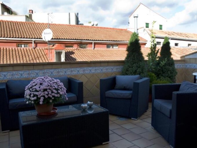 Au deuxième étage, l’appartement comprend deux chambres (l’une avec un lit queen-size et l’autre avec deux lits simples), deux salles de bains, un spacieux salon-salle à manger, une cuisine entièrement équipée et une terrasse privée avec mobilier de jardin.
