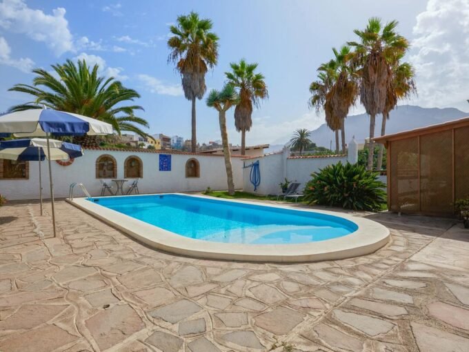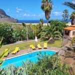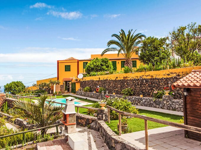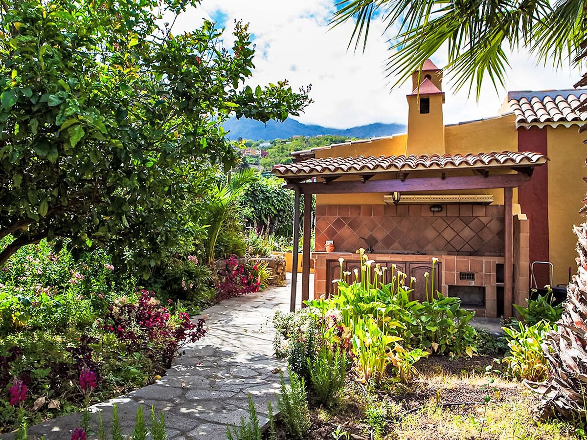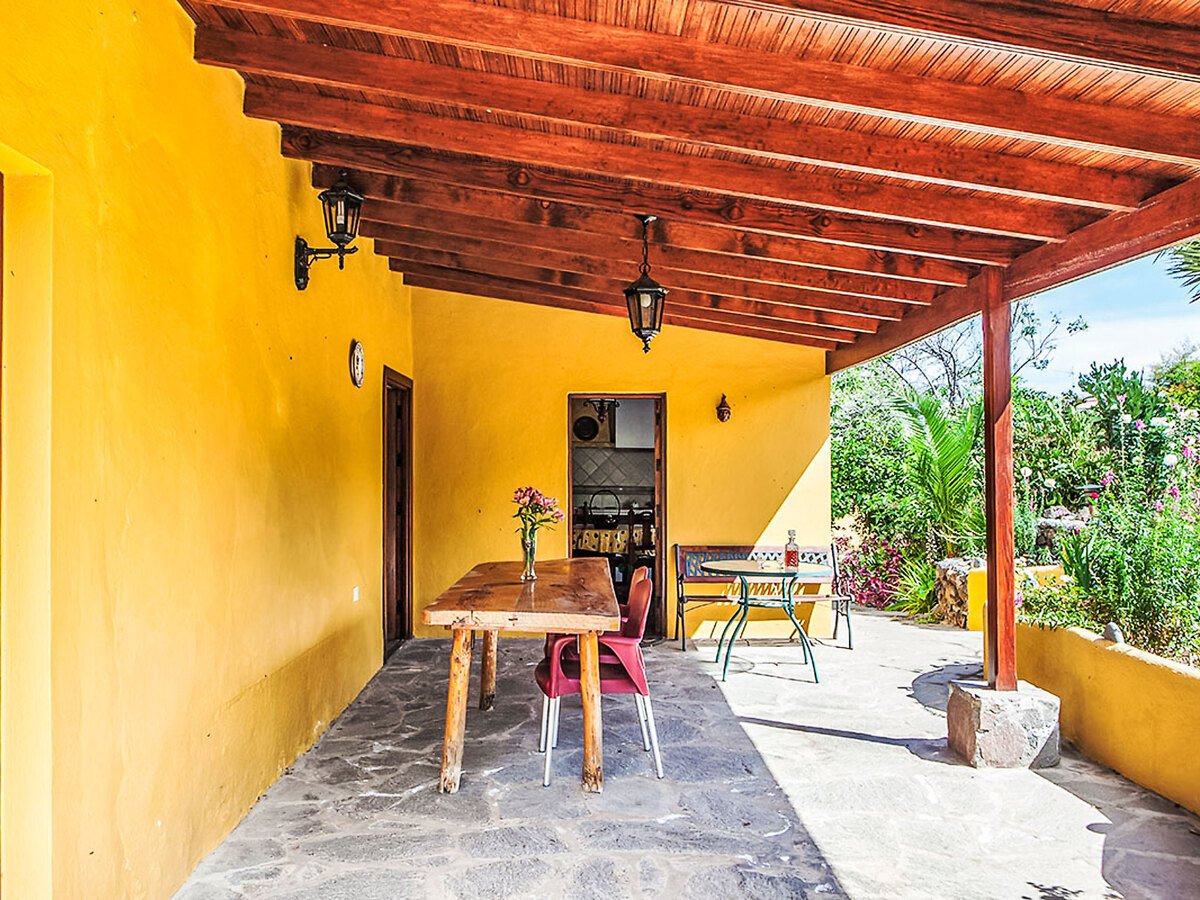 La Orotava: Belle maison rustique « Camino La Candelaria ». En-dehors de la localité, sur un versant, à 6 km de la mer. En commun: terrain 20’000 m2 avec pelouse, verger, jardin propice à la détente, piscine (7 x 4 m, profondeur 120 – 150 cm, disponibilité saisonnière: 01.Jan. – 31.Dec.). WC dans l’espace piscine, douche extérieure, pool house avec réfrigérateur, meubles de jardin, barbecue. Infrastructures de la résidence: Connexion WIFI. Place de parking sur le terrain. Magasin d’alimentation 300 m, restaurant, arrêt de bus 20 m, plage de sable 6 km. Le propriétaire n’accepte pas les groupes de jeunes. Veuillez noter: route principale 50 m de la maison. D’autres appartements sont également proposés à la location dans cette maison de vacances. Terrasse-solarium, 20 m2.